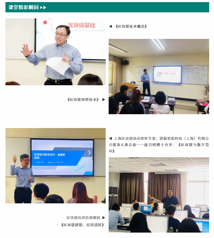 本期推送聚焦五月启动的区块链产业课程,区块链技术概念解读,带领SHU MBAer揭开区块链领域神秘面纱,区块链应用仿真模拟,实操掌握区块链建链与信用流转,更有培养学生“整合与实践”能力、助力知智融合的,真实企业商业诊断项目中期汇报会,被诊断企业董事长携高管团队进行专业解读、点评与建议: