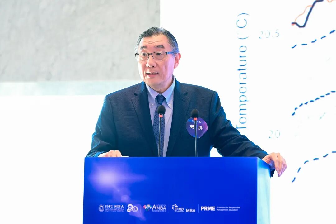 杨教授讲到全球气候危机对未来工商领袖提出了新的挑战和机遇,需要他们具备可持续性、转型创新、等方面的能力和思维,以应对气候变化带来的挑战。现场演讲节奏把握的恰到好处,引人深思。