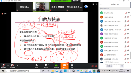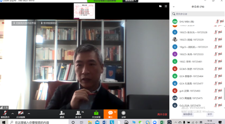 疫情期间,按照学校研究生院的统一部署,上大MBA线上教学持续进行。在中心领导的精心统筹,各部门和授课教师的通力配合下,上大MBA在线教学运行平稳有序。授课教师结合课程特点和MBA学生的培养要求,积极谋划,精心设计,科学选用教育教学方法,努力调动学生的积极性,培养学生自主学习的意识,学生参与热情高涨。