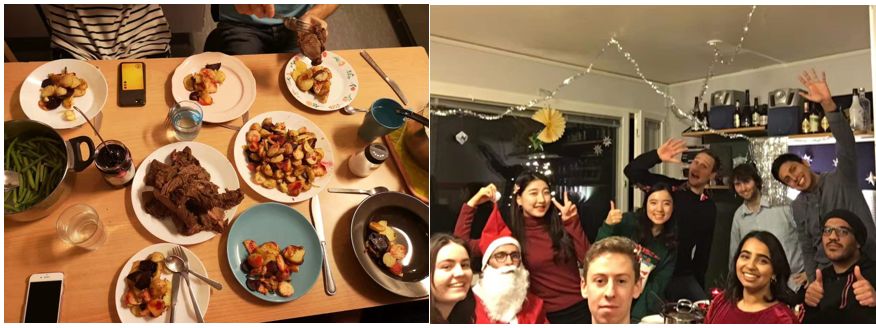 我们在这里度过了当地的万圣节、圣诞节、露西亚节、等各种大小节日,每一个节日的庆祝方式和装扮也不尽相同。万圣节大家自创不同的恐怖妆容;圣诞节corridor伙伴们分工完成了完整的西餐(前菜,主餐,甜点)并交换了礼物;露西亚节穿上礼服参加正式派对迎接光明;其他每个节日都能体验到不同的文化和创意。同时,这里个人主义程度高,很少有人评价他人的外表、肤色、发型、国籍、财富、高矮胖瘦,鼓励个人特色和创意,上海大学同学组建的乐队在当地披萨店和乐队都有过演奏。